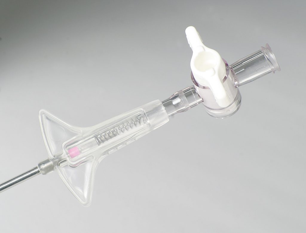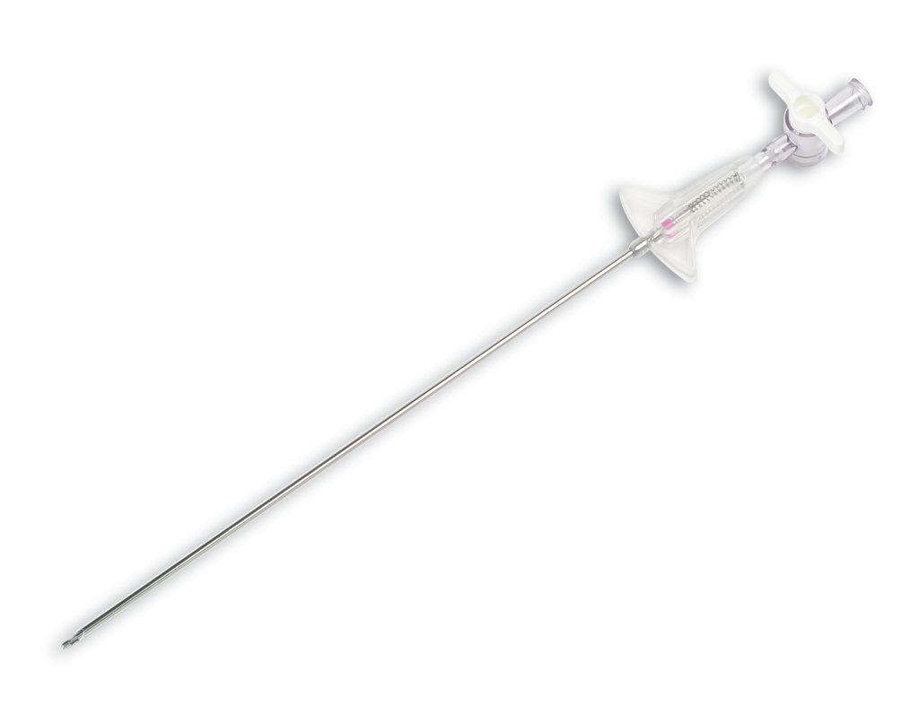- Handle contains a stopcock and a luer lock to connect easily to insufflation tubing